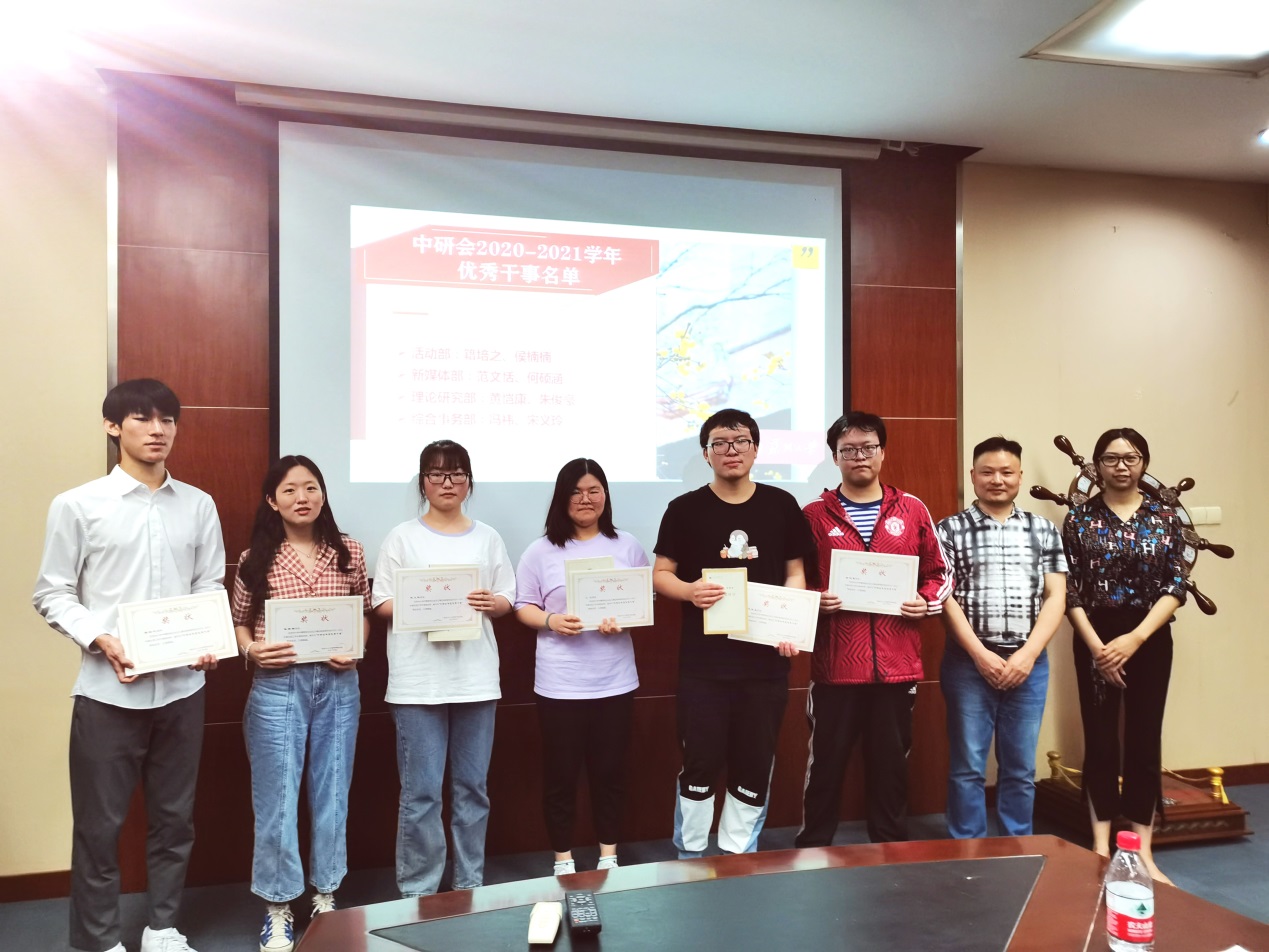 针对一年来的工作成果,社团根据2020-2021学年各部门统计的活动积分情况,评选出了一批干事,授予他们“中研会2020-2021学年优秀干事”荣誉称号。活动现场,指导老师和负责人为优秀干事们颁发了奖状,并赠送马列主义经典著,激励他们在新的一年再接再厉,为中研会贡献自己的力量。
